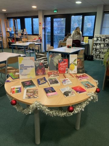 Grâce à madame Chinette-Pailhe, des belles tables de Noël vous attendent au CDI mais également des quizz de noël, des pochettes surprises…. De quoi en profiter !!!!